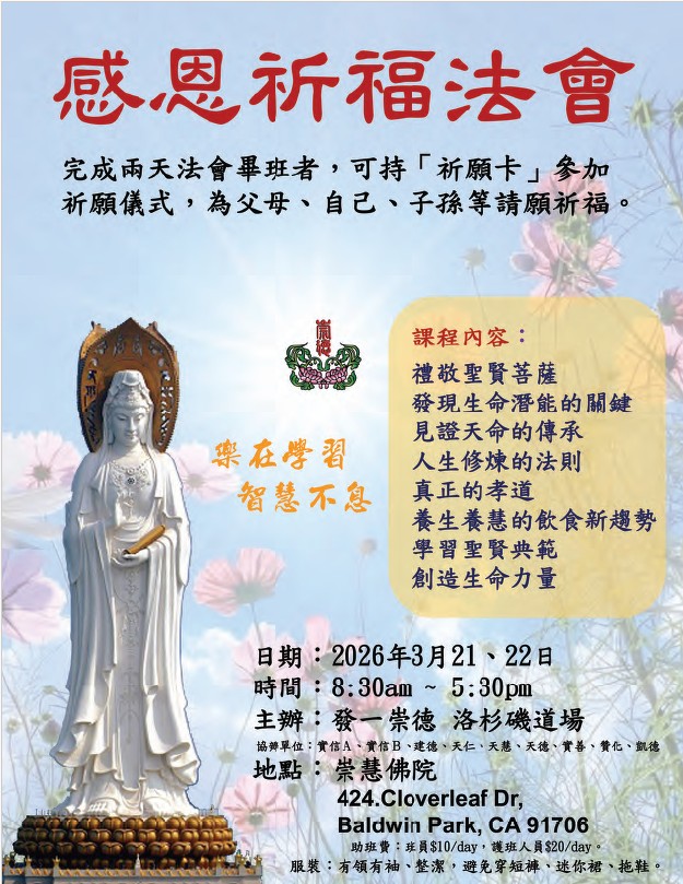 發一崇德美國洛杉磯道場 2026 年進修班時間表